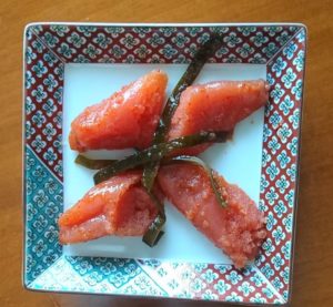北九州のかば田食品の辛子めんたい北海道産の肉厚の昆布で漬け込んだ、プチプチか感が感じられるめんたいこです。昆布汁も液体パッケージに含まれているので、表面乾燥がなくしっとりとした感触で辛めのそれでいて、昆布のだしでまろやかさも感じられます。液体の残っただしは炒め物やパスタソース等で使用します。110g¥1,080税込