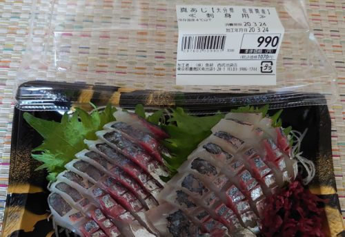お刺身はあじを購入。池袋西武は来客数も多いため、高級魚として知られている、大分県佐賀関産、関あじのお刺身も大容量で安価で購入出来ます。
