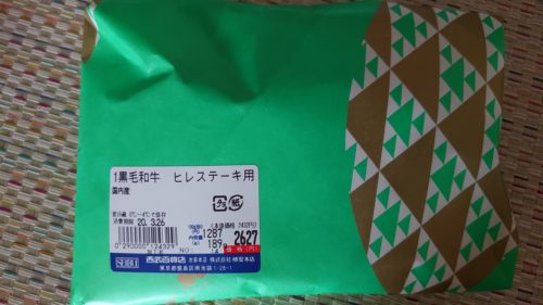観光客激減で、黒毛和牛やカニ等の高級海鮮等の生産者の方々が悲鳴をあげている報道を最近は耳にしますが、池袋西武の柿安地下1階精肉売場では、本日の半額商品が黒毛和牛のヒレステーキでした。