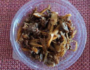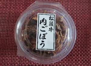 数か月に一度三越、伊勢丹に出店され、高級松坂牛の精肉ももちろん販売されますが、こちらの肉ごぼうは、お値打ちお惣菜で味付けも絶妙!100g1,080円程で、