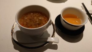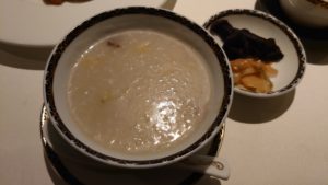 ご飯かお粥を選べ、小さくカットでされた、さつまいも🍠がザーサイを入れると絶妙なお粥で、先にいただいた薬膳効果もありそうなスープ