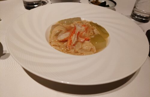 カニ🦀あし、たっぷりの冬瓜とお豆腐、味付けも優しい塩味です。後味スッキリ
