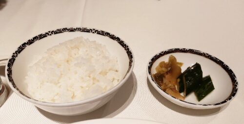 お粥か白米かをセレクト出来ます。お粥をオーダーした事もありますが、猫舌&かさも増えるので、白米少なめで、お願いしましたが~普通盛り?の感じでした。搾菜、キュウリと共に!