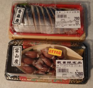 日本橋三越も徒歩7分程の距離なので、本館地下1階吉川水産でしめ鯖と、大きめ富山のホタルイカを購入して帰りました。