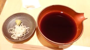 石月では毎朝、職人が国産蕎麦の実を石臼で挽いた打ち立て二八蕎麦を、頂けます。