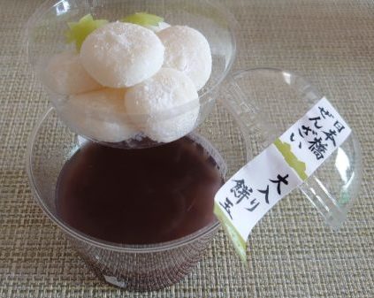 名物日本橋ぜんざいは後入れお餅が5つも付いていて、小豆が甘さ控えめの上品なぜんざいです。350cal