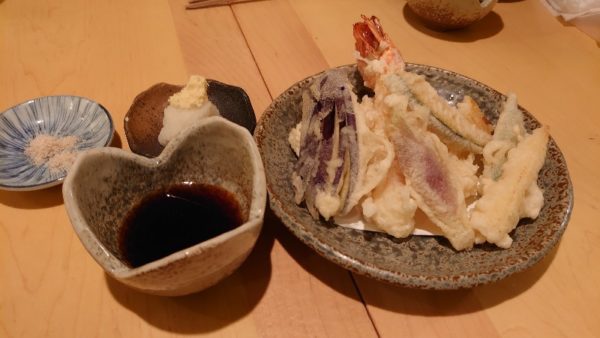 天ぷら盛り合わせエビ3尾と野菜等もちろん揚げたてですが、やはり天ぷら屋さんでの衣や素材と比べてしまうと、相違は明らかですが、1,900円とリーズナブルでお蕎麦のお供で🎵お店は広くないですし、この時期ですので、早めの退散というランチでした。