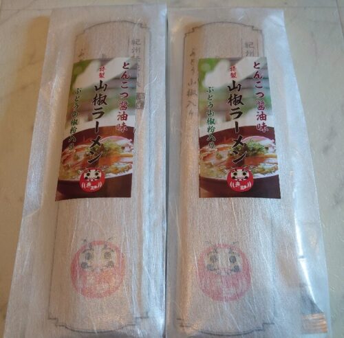 ラーメンは豚骨、麺に山椒が練り込んであり、和歌山県の名産ぶどう山椒がほのかに香り