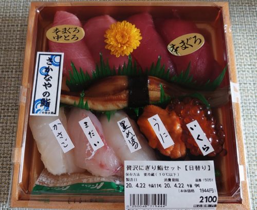 鮮魚売り場の握り鮨は内容が明解できれいなので購入しやすいです。