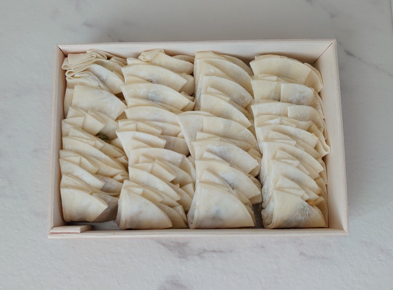 皮(小麦粉、菜種油、塩)豚肉、にら、白菜、ごま油、醤油、ガーリック、唐辛子、調味料(アミノ酸等)加工でんぷん、香辛料