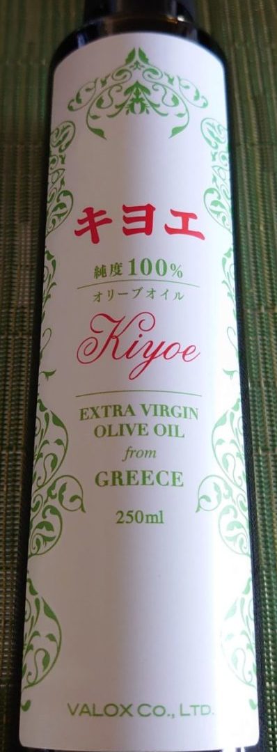 食料品フロアで販売されている、ギリシャ、クレタ島産オリーブオイル キヨエです。温度設定が厳しく定義つけられた、熱をかけずに搾油される、コールドプレス製法の高品質商品です。250ml1,301円青みのスパイシーなオイルが好みですが、キヨエは和洋、どんな料理にも合いそうな、まろやかで、癖のないテイストです。