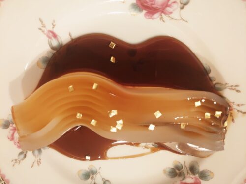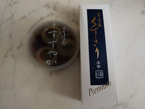押し出す作業が楽しいです(^^♪こちらはプレミアム(沖縄産の黒糖と阿波徳島産の和三盆糖を合わせた家伝の黒蜜金箔入り!!です。)すずやかも夏限定で毎年購入します。