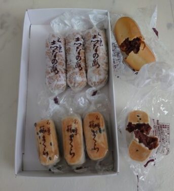 (幼少の頃に食べた銘菓ひよこの生地を思い出しました。)中身はこし餡をつつんだ小型の焼菓子。