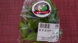 岩手産遠野のパドロンは、ピーマンと万願寺の間の様な味で、スペイン生まれの野菜で100gあたり¥270で可愛らしいく、水分量も多く美味しいお野菜でした。