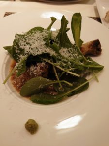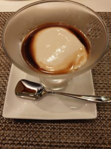 ドルチェの豆腐とホワイトチョコレートのムースとわらび餅黒糖バルサミコソース!!ってそんなにたくさんの食材って、けんかしないの?と半信半疑でしたが、めちゃくちゃ美味しく、最後にわらび餅が底に待っていて楽しめ、至福デザートでもっと頂きたかったドルチェでした。