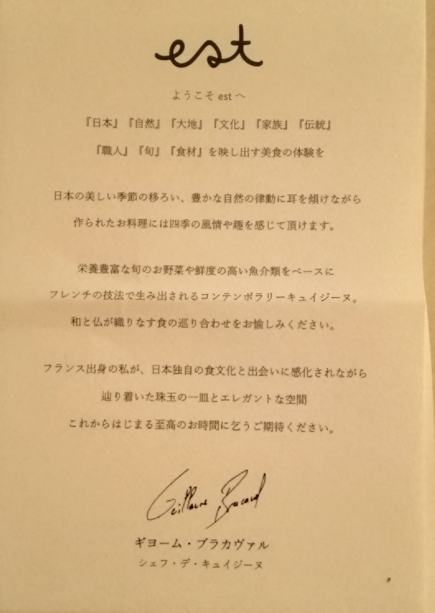 革新的なフレンチを、食材の調達は、日本各地から妥協を許さぬ厳選され完成するestのメニューは、