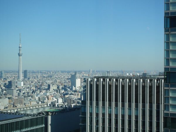 快晴の東京の景色を見ながら、ほかの客席はほとんど見えないので