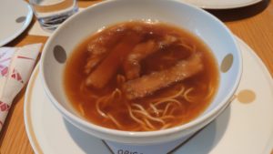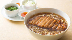 4時間もの時間がかかる、澄んだスープは奥深い香りで、揚げ豚は国産ロース豚を秘伝のたれに2時間半付け2度揚げしたものなので、とても柔らかで