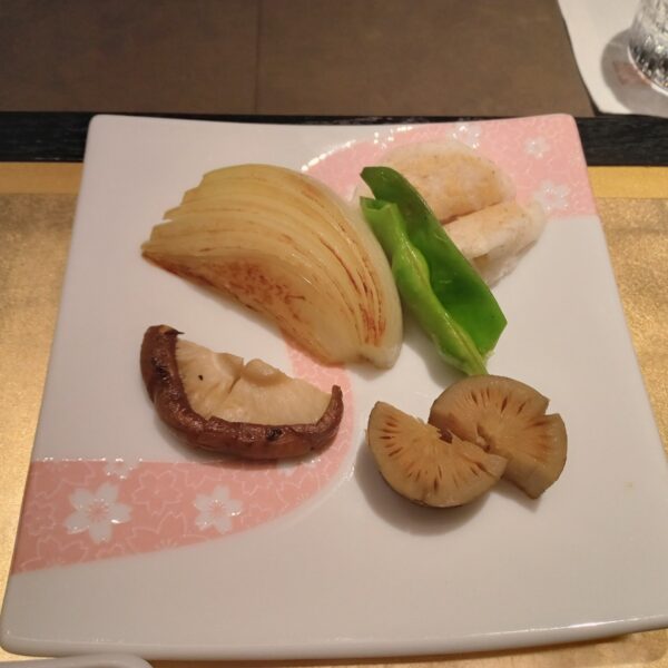 モロッコいんげんやシイタケ、右奥は自然薯焼き、ゴボウとさりげなく店名にちなんだ