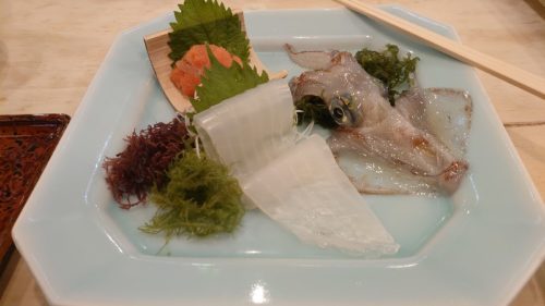 やはり呼子のイカは外せません。鮮度の違いはエンペラの透明さからもわかるように販売されているイカとは鮮度と甘味も違います。