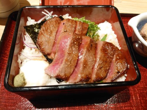 そして、海苔との相性は抜群で、とろろ芋、わさびが添えてあるのも、お肉の味を引き立てる名脇役!?となっていました❗ご飯量も多すぎずベストな量の特選ロースステーキ重でした☺️