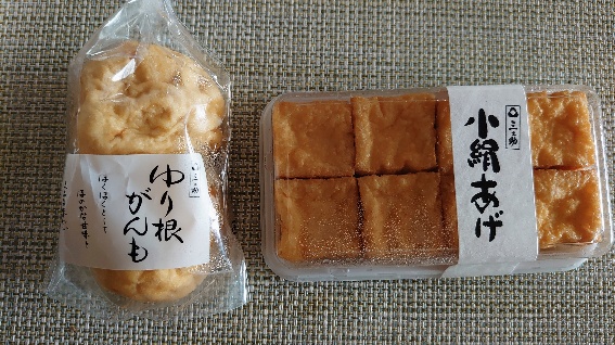 ゆり根がたくさん入っているゆり根がんも389円や小絹あげ378円を購入。