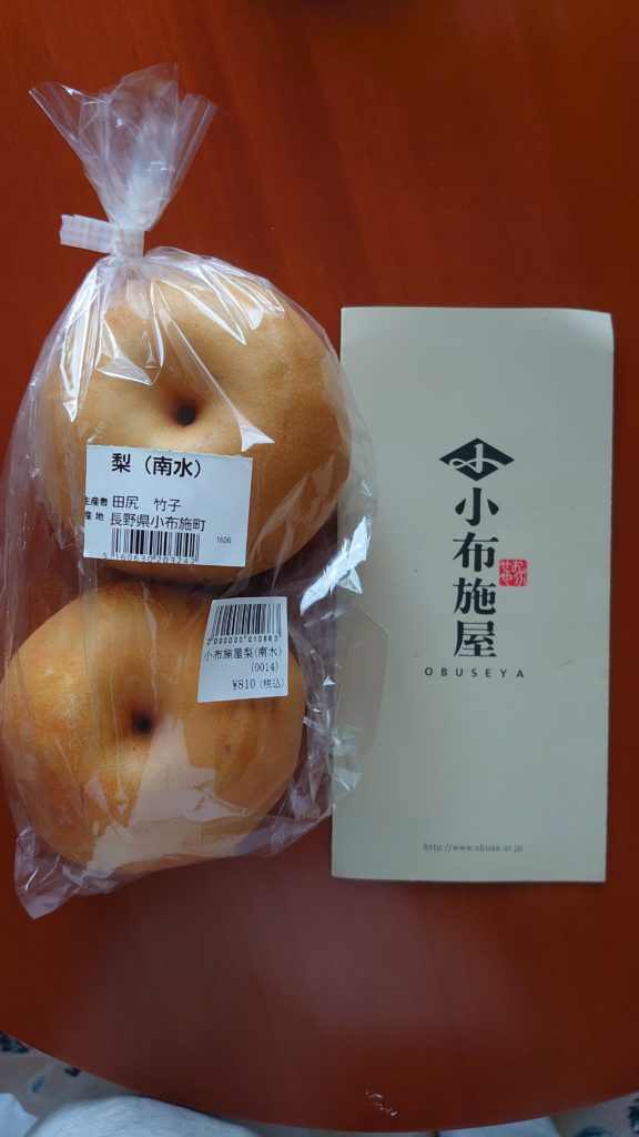本日は小布施の南水を購入。長野県オリジナルの最も遅い時期に収穫される品種で、しゃきしゃきの、重みずっしりで水分たっぷり🍐