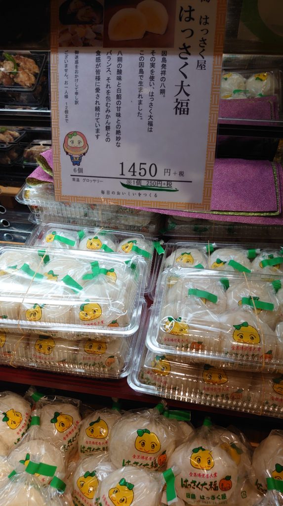 広島県のアンテナショップでも大人気のはっさく大福も大量入荷されていました。外の皮はもちもちでぎっしりと入った、