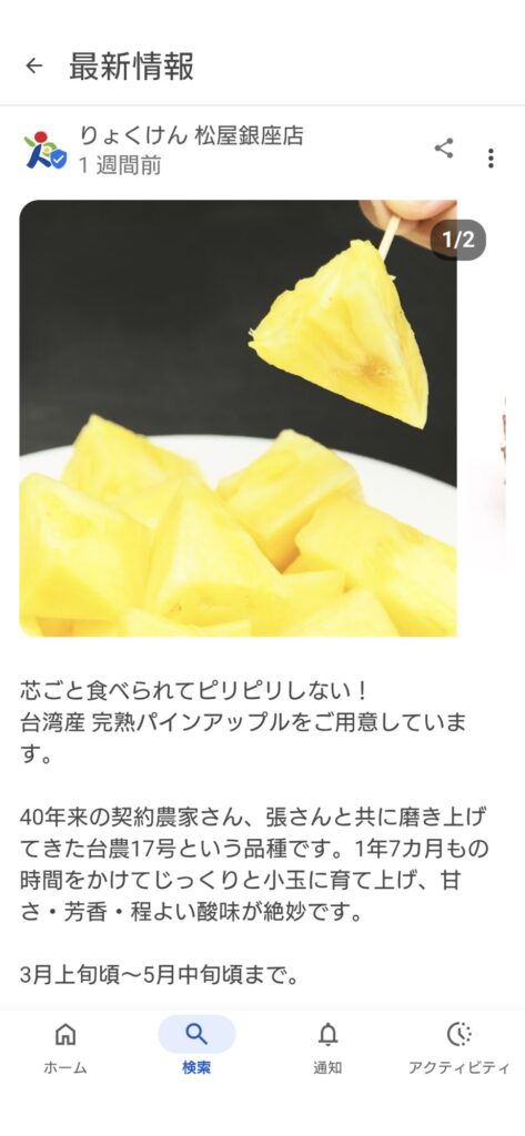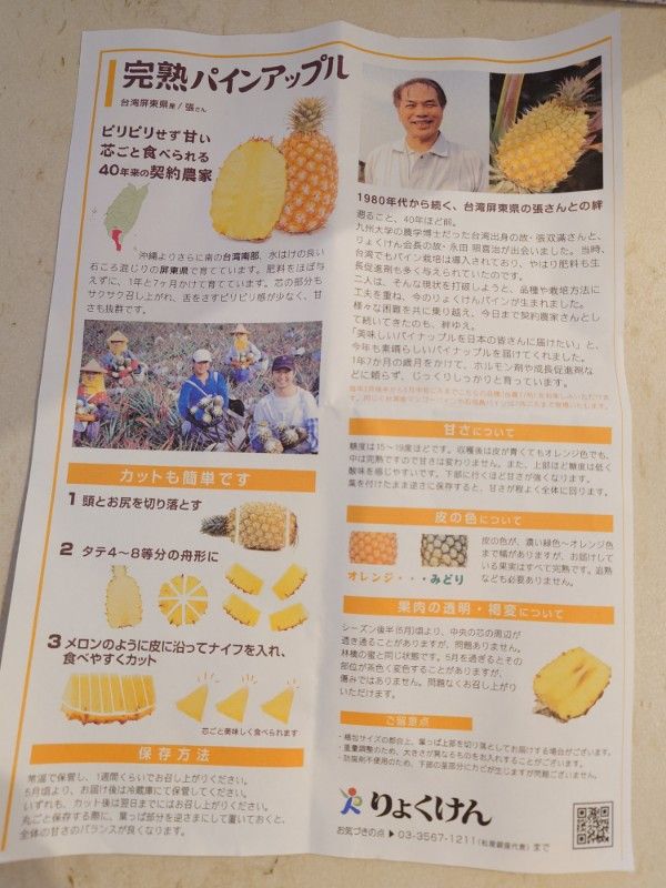 そして今の時期のフルーツオススメは台湾パイナップル芯まで余すことなくいただけます。生産者さんの厳選もりょくけんさんならではです。