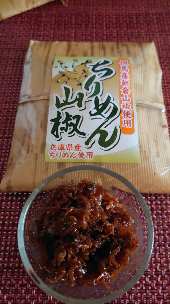 ちりめんは、甘辛煮で山椒の実やちりめんは兵庫県産,山椒は但馬産朝倉山山椒を使用しています。大根おろしに混ぜて厚揚げの焼いたのにかけるのが好きです。¥702税込60g