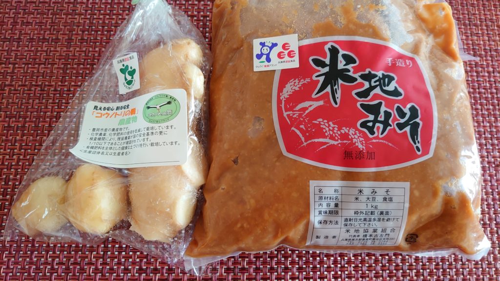 米地みそは程よい甘さと塩分で、米と大豆と食塩の原材料で1キロ¥810税込です。最近ちちんぷいぷいTVでも紹介されたファンの多い味噌だそうです。
