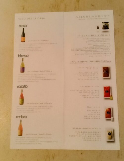 メニューは女性はピンク男性はホワイトの細長封筒に入っています。