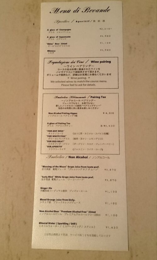 最近はペアリングが主流ですが、ショートコースなのでノンアルコールを選択