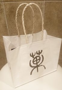 東京ミッドタウン日比谷地下1階 趣のある素敵な鈴の刺繍が縫込まれたのれんが、ダイナミックで目印です。店内は右手が生菓子、左手が日持ちのする贈答品の構成です。季節の生菓子桜餅を購入しました。¥206税込/1個桜の葉まで美味しい桜餅です。かなりの行列の伊勢丹新宿でも時々購入します。ミッドタウン日比谷にも出店していたのは最近のようで、今後利用したこと思います。見た目にもとても美しい和菓子が数多く販売されていますが、特に鈴型のミニミニ最中(商品名 鈴乃最中おてづめ)はお土産に時々購入します。かご入りの商品もありプレゼントに最適です。ショップ袋もロゴが特徴的で目立ちます。