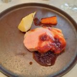 高タンパク、低脂肪の鴨の炙り焼きは弾力があり、クレソンやトマトの付合わせ