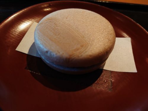 自家製最中は、その場で、最中生地に大納言餡を詰めて頂けます。この大納言最中ときな粉のてぃらみすは定番です。3種の中から好みの1品を選べます。もう1品は南瓜のパンナコッタでした☺️