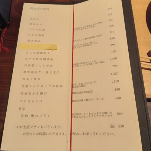 頂いたのは、・琳コース お料理5品、 十割 デザート」 6,600円