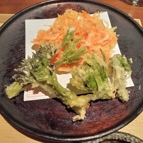 桜えびのかき揚げと山菜 いつもながらの薄衣で、食材の良さ季節感が感じられます。