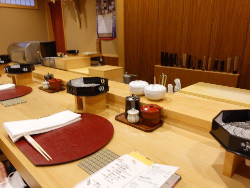 8名掛けのヒノキのカウンター席のみのこじんまりとした店内で、ディナーは18:00