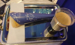 包装紙のカラーも店内イメージと同じく、ラピスラズリのモダンロココ調でシャンデリアもブルーとトータルのこだわり感を感じました。