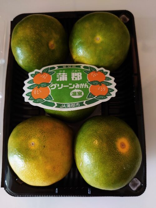 グリーンみかんの季節となりました。※蒲郡みかんの4つ玉マークは商標登録されています。