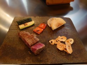全国の共進会や品評会でチャンピオン牛に選ばれた最高級の神戸牛を、多く扱っている高級店。夜は中々敷居が高いですが、今日は1番お手頃の黒毛和牛のヒレステーキランチ100gコース¥4,200税抜をいただきました。