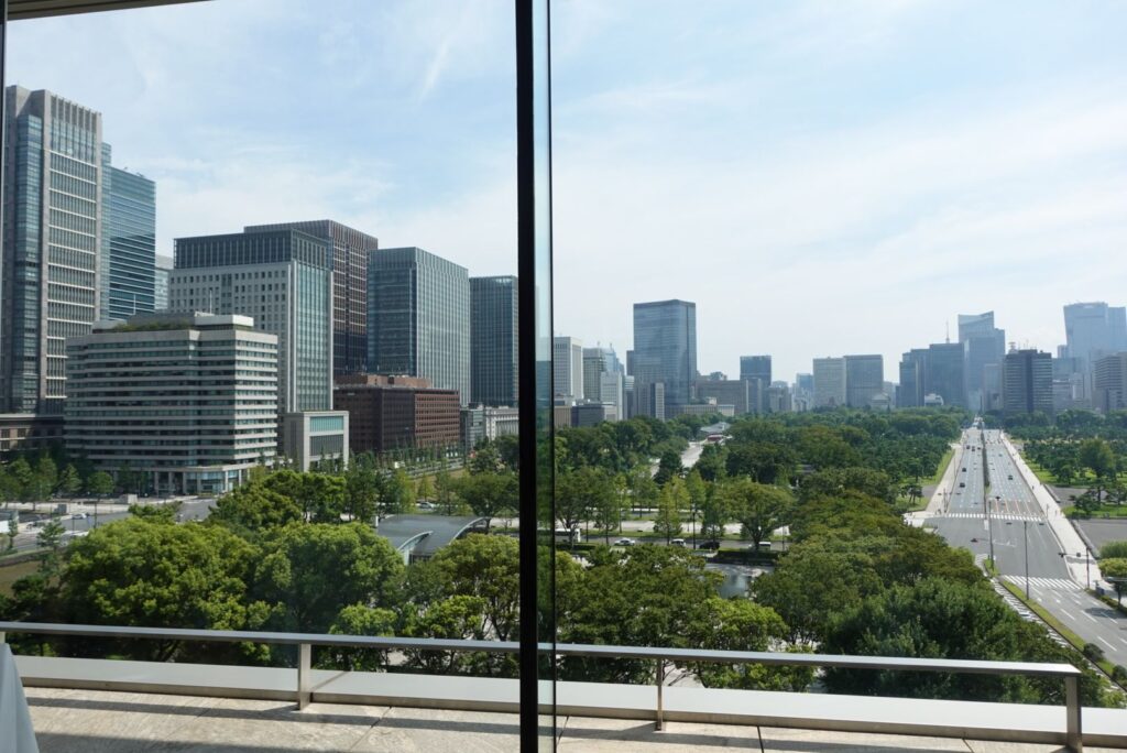 お席からは見晴らしも良く、和田倉噴水公園が向く全に見えます。