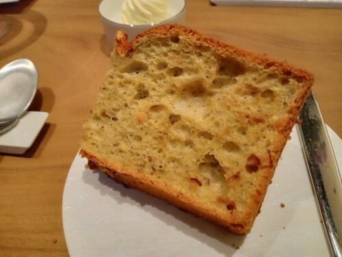 このシフォンケーキ生地のホワホワのパンは、甘くない燻製香る