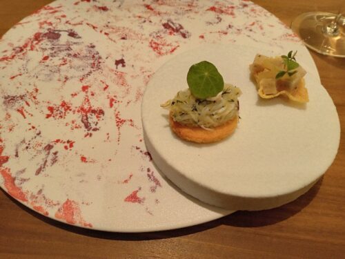 カナッペはポレンタ生地の豚足とは判らない豚足がトッピング