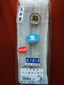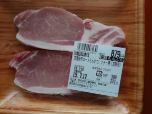 そして、お決まりの地下3階でロースとんかつ用(ロース側が好みです。)とはもを照り焼きで食べようと購入しました。骨切り済はもはいつもより大き目サイズでした。