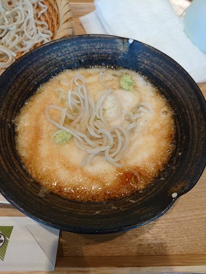 とろろ自体はとても美味しいとろろですが、つゆを足さないとあっさりしすぎているので、そばつゆを加えて美味しく頂けました。個人的には、つけだれとろろなので、もう少しとろろダレにだしやクルミだれが仕込んであるようなものが好みでした。