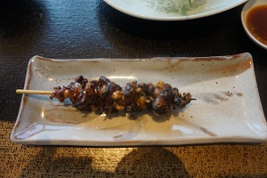大丸12階は景色もよく、運が良ければ窓側の席からお洒落な丸の内の、新丸ビルや丸ビルをJRの線路を挟んで臨む東京駅ベストロケーションです。お刺身付などのセットコースもありますが、うなぎをメインに堪能したいのでうな重(梅)¥4,515税込を肝吸い¥648税込付きで、うなぎが来る前に今の時期にぴったりネーミングの出羽桜桜花吟醸酒¥1,080税込を1合とゆばさし¥864税込肝焼き¥864税込で、うな重を待ちます。うなぎは待ってる時間も醍醐味でふっくらうなぎの美味しさも倍増します。たれは少なめでごはんにうっすら染みてる程度です。濃い味好みの方は卓上のたれを足したり山椒で好みの味でいただけます。