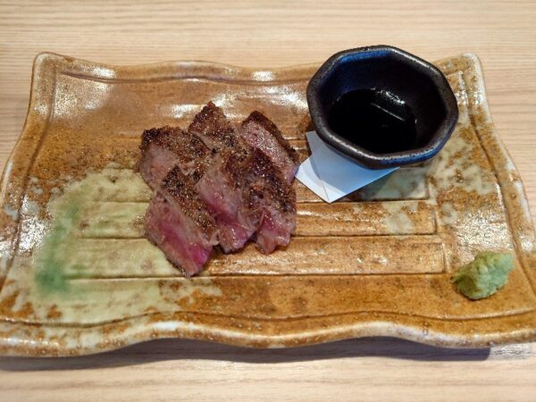 「仙台牛のステー キ」福井の名物 「焼き鯖棒寿司」や「小鯛の笹漬 け」、〆には武生製麺から取り寄せている