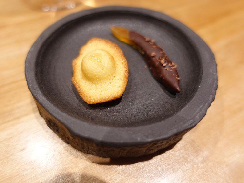 ウェルカムスウィーツはマカロン、プラリネチョコレート、秋を感じる